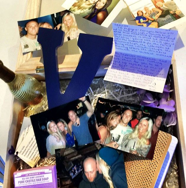 I’m a big fan [and have a ton] of photos with these ladies, from embarrassing middle school days to drunk nights to being a grown up, so I knew those would be a staple in the presentation. I’m lucky enough that these ladies have had time to get to know Will very well and build a special relationship with him in their own way, so I included photos of each of them with him also. I found some gold binder clips at Target to hold the photos together.