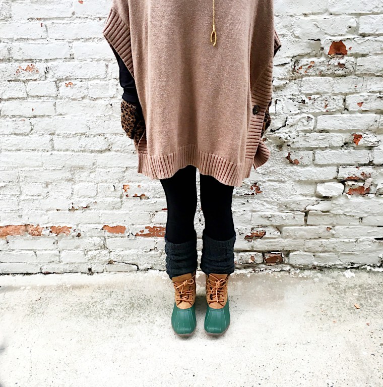 BOOTS: Sperry | NECKLACE: Madewell | LEGGINGS: Anthropologie | PONCHO: old (similar here)